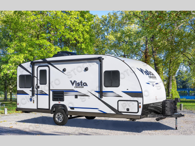 With any Vista Cruiser by Gulf Stream, you will enjoy premium quality in a compact and easy to tow travel trailer. The one-piece fiberglass roof, welded aluminum frame, and vacuum-bonded sidewalls with a composite barrier layer will create a strong and durable foundation to your RV. There are also LED running lights, along with an outside spray port, an electric awning, and a power tongue jack for easy set up. A home theater stereo with Bluetooth and speakers will allow you to listen to your favorite tunes, and there are interior and exterior TV mounting brackets if you decide to bring along a television. More interior features include "Opulence River Rock" wall vinyl, designer window treatments and night shades, tile backsplash at the range, and a premium foam mattress for your comfort.